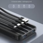- ⚡【Power Bank with Built in Cable X 4】This power bank equipped with 3 different type cables cover almost all the Micro USB/USB C/iPhone users needs.And 1 USB A port for recharging the power bank itself.With it’s own cables, there is no more cable mess and charge in a more convenient way.