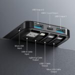 - ⚡【Charges 6 Devices Simultaneously】With it’s built-in 3 output cables(Micro USB+USB C+iPhone connector) and 2 standard USB A outputs also 1 USB C ouput,it allow charge 6 devices max at the same time.