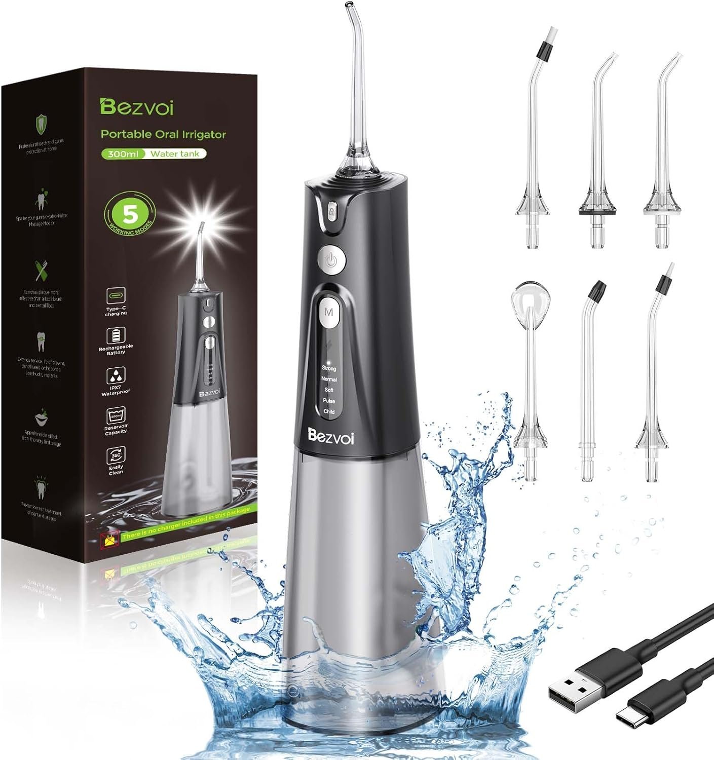 - What will you get? – 1×Bezvoi Water Flosser ; 6×Replacement Tips; 1×User Manual; 1×USB-C Charging Cable (Notes: Adapter not included)